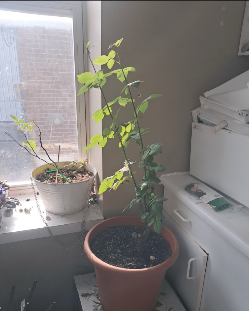 I had developed a ChatGPT session called Thalia that serves as a green house assistant so I could record progress, watering and fertilization, and get tailored advice for each plant. Thalia recommended limiting direct sunlight and better drainage. After drilling more holes in the large bucket, I placed the plant I named Estelle on an elevated, partial sun shelf. I messaged the nursery to ask for any recommendations or advice on how to improve Estelle’s condition. They recommended I hold off on fertilizer until she stabilized. A few days later, a new peach tea cup rose plant showed up for free. I was stoked, and planted Michelle (Mee-shell like Gilmore Girls) in an identical planter as Estelle with the extra drainage already installed.